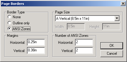 ANSI Zones – displays fully ANSI-compliant borders of the specified Page Size. The specified Number of ANSI Zones are added to the border.