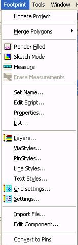 The Designer Desktop > Footprint Editor Pulldown MenuThe following Footprint menu is available when the Footprint Editor is active.