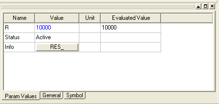 To set or change the value of a component parameter, click on the Value field and enter the new value. If the value requires a multiplier unit (such as K for 1000) click on the Unit field to select the multiplier unit. The Evaluated value shows the resulting number. You can specify a parameter value using an expression that evaluates to a constant. The expression is retained in the Value field, while the Evaluated Value field shows the constant resulting from evaluation the expression. This allows you to identify and modify the expression in the future.