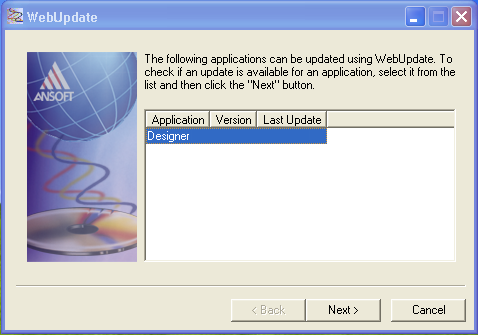 Select the Designer application listed and click Next. The update proceeds to completion. HFSS视频教程 ADS视频教程 CST视频教程 Ansoft Designer 中文教程 |