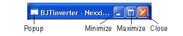 Clicking the white rectangle on an iconized window opens the same popup as the one shown above. To restore an iconized window to its previous size (cascaded or maximized), click the white rectangle, then select Restore on the popup. Alternatively, use the Cascade or Maximize buttons on the icon to restore the window to the desired configuration. Use the Close button to close the iconized editor window. Reposition the icons anywhere in the Design area by dragging them with the left mouse button. To restore the icons to a neat row at the bottom of the Design Area, use the Arrange Icons command on the Window pulldown. To relocate an iconized window in the Design Area, drag it with the left mouse button. Click Maximize (or use the Maximize icon) to enlarge the editor window to fill the entire Design Area. In this configuration, Minimize, Cascade, and Close icons appear at the upper right of the Designer Desktop, on the same level as the Top Menu bar: