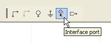 The simplest way to add a port to a Nexxim circuit is to select the Interface Port icon on the toolbar...