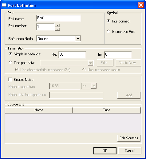 Place one port to the left of the existing elements, and a second port to the right. In our example, the input port is Port 1 and the output port is Port 2. 20. Right-click on the input port and select Edit Port from the menu. The Port Definition dialog opens: