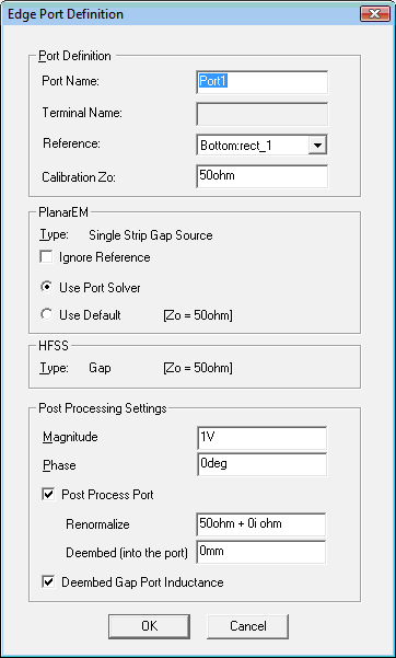 Port Definition Port Name specifies the port being defined Terminal Name controls the name of the terminal Reference specifies the reference used by the port Calibration Zo expressed in ohm