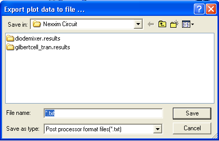 Importing and Exporting Data > Exporting Data Table FilesTo export simulation results in ASCII tabular format: 1. Open the plot you want to export. 2. On the Report2D menu, click Export to File. (Alternatively, right-click on the data table, and then click Export to File on the shortcut menu.) The Export plot data to file dialog box appears.