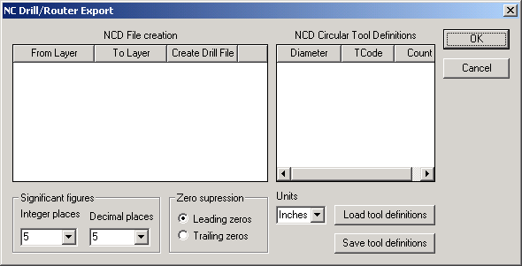 Importing and Exporting Data > NC Drill/Router ExportTo export layout data, on the Layout menu, click Export File, this opens the Save As dialog. Selecting NC Drill File opens the NC Drill/Router Export dialog.