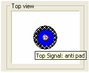 Displays the pads of the selected layers from a top down perspective. Tool tips indicating hole/plating/pad on a layer appear when the mouse hovers over one of these shapes.