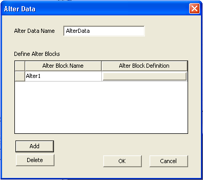 Initially, no ALTER blocks are defined. Click Add to start a new ALTER block (Alter1 in the picture above).