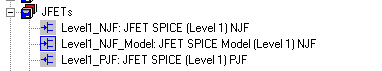 4. Click on the plus sign for a component category to display the available devices and models. For example, here is a portion of the expanded JFETs category: