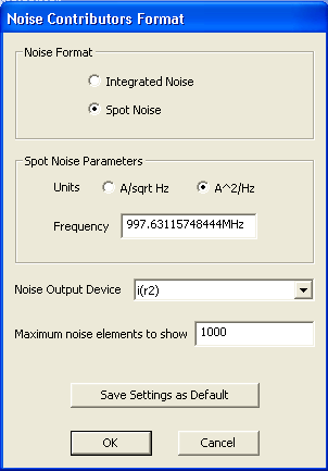 •  Click the Save settings as default button to save the Noise Contributors Format dialog settings as the defaults for future displays.