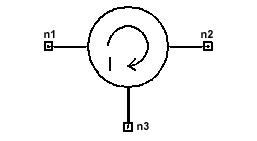 [PRL=val] [IS=val] [PIS=val] n1, n2, and n3 are the nodes connected to the circulator. The entry COMPONENT=circulator identifies the element as a circulator.