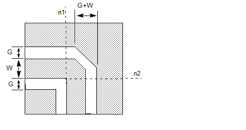 n1 and n2 are the names of the nodes attached to the bend. The entry COMPONENT=cpw_mitered_bend identifies the element as a coplanar waveguide unmitered bend.