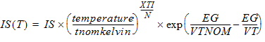 Current Equations The current equations are based on the SPICE diode with breakdown. The following expressions are used: VT = k*temperature/q (circuit thermal voltage) VTNOM= k*tnom_kelvin/q (nominal thermal voltage, ) k = Boltzmann’s constant tnom_kelvin = Analysis temperature converted from °C to °K q = Electron charge