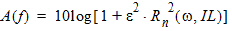 Rn(ω, IL) is the Nth-order Chebychev rational function, e = 100.1AMIN, and w = 2pf.