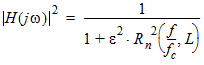where: Rn(ω, IL) is the Nth-order Chebychev rational function, e = 100.1AMIN, w = 2pf,
