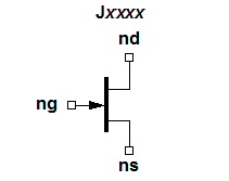 nd is the drain node, ng is the gate node, ns is the source node and nb is the base or substrate node of the transistor. The modelname is the name of a Level 8 MESFET model defined in a .MODEL statement elsewhere in the netlist.