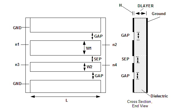 Grounded Coplanar Waveguide Elements > Coupled Lines, Asymmetric, Physical Length, Field Solver