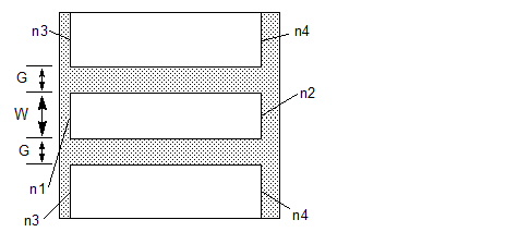 ![]() ![]() Netlist FormatAn instance of a grounded coplanar waveguide transmission line, electrical length with reference has the following netlist syntax: Axxx n1 n2 n3 n4 [W=val]