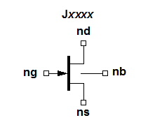 ![]() Curtice MESFET Instance Netlist SyntaxThe syntax for a Curtice model MESFET instance is: Jxxxx nd ng ns [nb] modelname [area_specification] [M=val] [DTEMP=val] nd is the drain node, ng is the gate node, ns is the source node and nb is the base or substrate node of the transistor. The modelname is the name of a Curtice model MESFET (Level 3, SAT 0) defined in a .MODEL statement elsewhere in the netlist. The area_specification is one of the following entries: [[AREA=]area] or [W=width] [L=length]