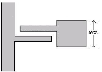 where FR4, the selected layout technology or substrate type, has a definition such as: .SUB FR4 MS( H=7.6200e-004 Er=4.4 TAND=0.02 TANM=0 Notes1. The output line width WF2 must be less than or equal to the total width of the capacitor: WF2 <= WCA. 2. The finger width W and the spacing between adjacent fingers S are the same for all fingers. 3. The model takes into account the effect of the step from the terminal strip to the output at node 3. A T-junction is used to model the connection bewteen the feedline and the ICAP fingers. 4. The capacitor width WCA has a default value of (N*W + S*(N-1)). WCA can be set to a value larger than the default. An error results if WCA is set to less than the default.