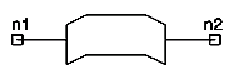 n1 and n2 are the nodes connected to the bridge. The entry COMPONENT=msjump identifies the element. The entry SUBSTRATE=substrate_name identifies the microstrip substrate model name selected for the design (see Selecting a Microstrip Substrate). See the Microstrip (MS) Substrate for information on this substrate type.