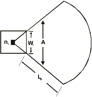 ![]() Netlist FormatAn instance of a series radial stub with aperture width specified has the following netlist syntax: Axxx n1 [n2] A=val WI=val RL=val COMPONENT=radial_stub_width_series SUBSTRATE=substrate_name n1 is the name of the node attached to the radial stub. n2, when present, is the reference node. The entry COMPONENT=radial_stub_width_series identifies the element as a series radial stub with aperture width specified. The entry SUBSTRATE=substrate_name identifies the microstrip substrate model name selected for the design (see Selecting a Microstrip Substrate). See the Microstrip (MS) Substrate for information on this substrate type.
