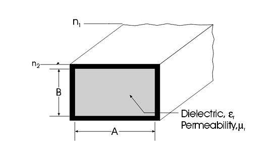 ![]() Netlist FormatAn instance of a rectangular waveguide termination has the following netlist syntax: Axxx n1 n2 [A=val] [B=val] COMPONENT=rectangular_waveguide_termination SUBSTRATE=substrate_name n1 and n2 arethe nodes attached to the open stub. The entry COMPONENT=rectangular_waveguide_termination identifies the element. The SUBSTRATE=substrate_name is the rectangular waveguide substrate model name selected for the design (see Selecting a Rectangular Waveguide Substrate for details.
