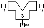 NOTE: There is no netlist form for this component. It is available for Planar EM simulation only. n1, n2, and n3 are the names of the nodes attached to the tee.