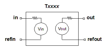 In both forms, node in is the input signal node and node invref is the input reference node. Nodes out and outvref are the corresponding output signal node and output reference node.