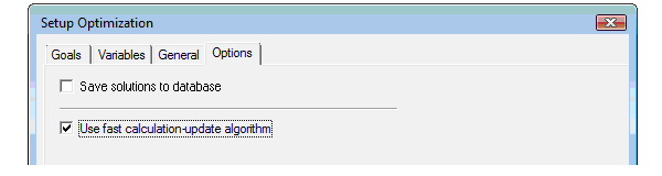 A fast calculation-update algorithm is available to speed up optimetrics and report updates during optimetrics analyses. Fast calculation-update will generate the same optimetrics results, only faster, and is available for all optimetrics analyses except Tuning analysis. By default, the fast calculation-update option is automatically enabled whenever it is applicable, but you may configure it using the Options page of the Setup Optimization dialog by clicking Product > Optimetrics Analysis > Add Optimization.