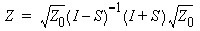 HFSS and Planar EM Simulators > Computing the Z-MatrixThe impedance matrix, Z, is calculated from the S-matrix as follows: