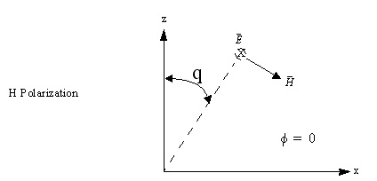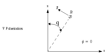 • Conversely, with a TE-polarized wave, in an HH case when phi = 0, the E field is in the phi direction (+y direction), and the H field is in the +theta direction (dashed line below).