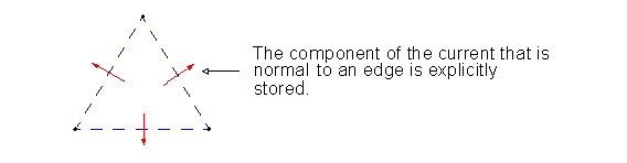 HFSS and Planar EM Simulators > Representation of the CurrentThe value of the current at points inside each basis element (triangle or rectangle) is interpolated from the edges of the basis element. On each basis element, Designer stores the components of the current that are normal to the edges of the element. The current inside each element is the superposition of these normal values.