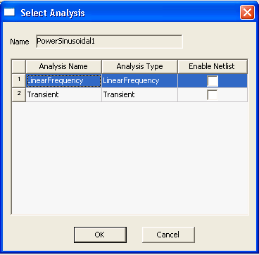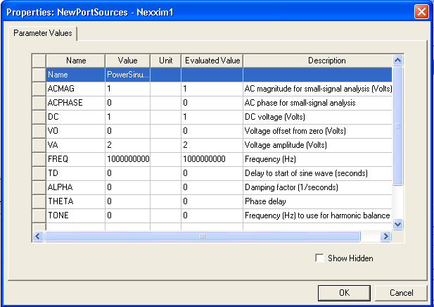 Click in the Name field to assign a name other than the default (“PowerSinusoidaln”). Assign new values or units to the source parameters in the Parameters window by clicking in the Value or Unit field to be changed. Click OK in the Properties dialog. The Select Analysis dialog opens: ![]() Use the checkboxes to associate the source with one or more analyses. Click OK to return to the Configure sources and ports dialog. The Configure ports and sources dialog box now shows the new source.