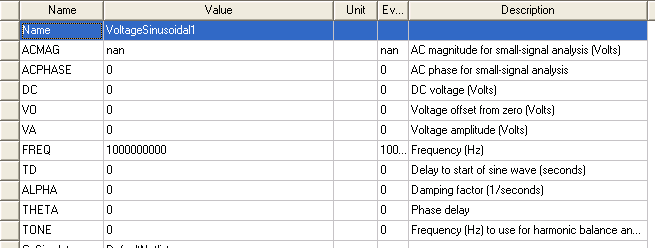 Sinusoidal Port Voltage Source In the Add New Source panel, select Voltage and Sinusoidal. Click Add to selected port. The display below shows the Sinusoidal parameters.