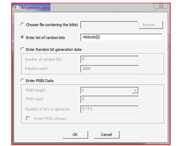 Text Array Variable references can also be entered into the fields of the Bit pattern data dialog that opens when you click the Bit Pattern button property of the Param Values Tab in the Property Window. For example, this applies to various components found in the "Nexxim Circuit Elements/Independent Sources" component library, such the EYESOURCE component: ![]() You may enter text array variable references in either of the following fields shown above: Choose file containing the bitlist Enter list of random bits