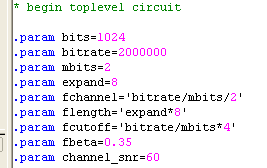 Nexxim Design Examples > MPSK Netlist ParametersIn the top menu bar, select Circuit > Browse netlist. Note the netlist parameters defined near the top of the netlist: