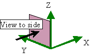 This section may contain the keywords "front" and "side" followed by a bitmap file name. These bitmaps are used for the volume selection. The definitions of "front" and "side" in relation to the global coordinate system are shown in the following pictures: