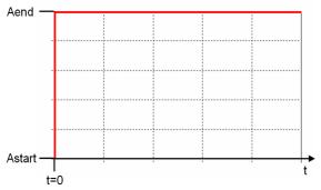 Enables you to define a Heavyside step excitation. The parameters Astart and Aend specify the amplitude values before and after t=0. At t=0 the function value is Astart.