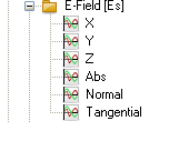 Vector Fields: Every vector field is stored in its own folder. This folder contains the vector components, the vector’s absolute values and the tangential and normal parts of the vector relative to the surfaces of the structure.