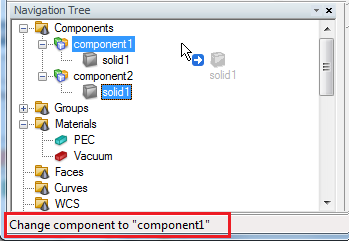 Navigation TreeMany operations i.e. Change Component, Change Material, etc can be performed using drag and drop in the navigation tree. Feedback is provided using an appropriate mouse cursor and the status bar text when you look for a target item while dragging.