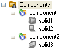 If a specific component is selected all its solids are visualized while