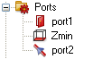 ports are plotted as an orange line with a red cone in their middle.