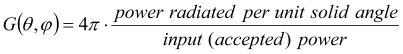 Due to its definition, the E-field pattern has the unit of a voltage. Radiation efficiency: The antenna radiation efficiency is defined as the ratio of gain to directivity or equally the ratio between the radiated to accepted (input) power of the antenna: