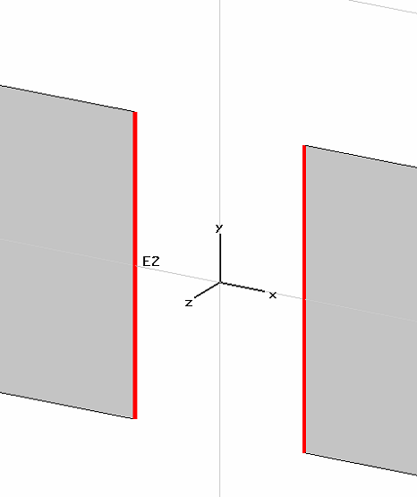Note: The S-Parameter ports are the most frequently used Port Types and contain internal resistors for calculating S-Parameters with fixed reference impedances. In contrast, the Voltage and Current ports are ideal sources. The latter types of ports are normally used for EMC types of application. Voltage port: This port type realizes a voltage source, exciting with a constant voltage amplitude. If this port is not stimulated in the transient analysis, the voltage along the wire is set to zero. The voltage excitation signal will be recorded during the solver run. Current port: This port type realizes a current source, exciting with a constant current amplitude. The current excitation signal will be recorded during the solver run. Impedance element (S-Parameter type): This port type is modeled by a lumped element, consisting of a current source with an inner impedance that excites and absorbs power. The current source will only be active when the discrete element is the stimulation port in the transient analysis. This port realizes an input power of 1 W and enables the calculation of correspondent S-parameter, based on the incoming and outgoing time signals. In addition, it is also possible to monitor the voltage across and the current through the discrete port. Note that the orientation of the discrete port is used to determine the phase of the S-parameters. The discrete port is defined by two points, determined either by picking two points or entering valid expressions for the point’s coordinates. The input data can be seen in the Modeler View, where the discrete port is represented by a straight line and a cone. Due to the fact that discrete elements must be located on the calculation mesh, it is always advisable to examine the mesh representation of the element in the Mesh View. Here, one can observe that almost all elements on the grid consist of a metallic wire. Only the middle element contains the source.