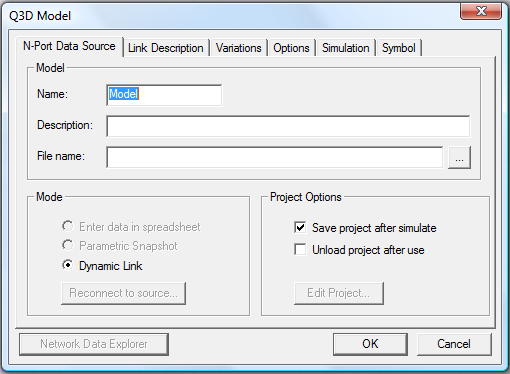 Dynamic Links and Solver On Demand > Adding a Dynamic Link N-Port from Q3DTo create a dynamic link from Q3D to Designer, you import the Q3D data as an N-port device.
