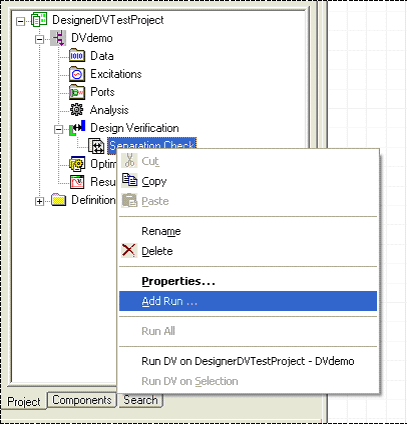 Design Verification > Design Verification RunsTo define and execute a Design Verification run, in the Project Tree beneath Design Verification, right-click the Rule Set you wish to define and choose Add Run. ![]()