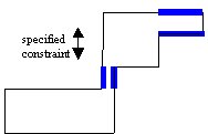 WidthToErrors results are clusters of segments that meet the specified constraints. Each error segment indicates the portion of the geometry edge that meets the constraint. The error clusters are returned in a DV layer. The heavy lines in the illustration that follows show the portions of edges that are returned as two error clusters.