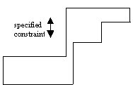WidthToPolygons results are polygons that have at least one edge pair that meets the specified constraints. The constraint amount may be given with or without units. If no units are specified the current default length units are used. The polygons are returned in a DV layer. The entire polygon in the following illustration is returned.