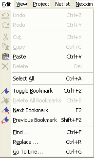 The Designer Desktop > Edit Pulldown for Netlist EditorWhen the Netlist Editor is the active window, the Edit pulldown menu is the following: